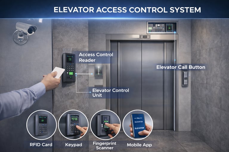 Elevator and Perimeter Access Control Systems are designed to regulate and secure vertical movement within buildings and controlled entry at facility boundaries, ensuring that access is granted only to authorized individuals and vehicles. Like other systems it supports authentication technologies including RFID and smart cards, biometrics, PINs, QR codes, mobile credentials and ANPR for vehicle access, enabling floor-wise, zone-wise and perimeter-level control.