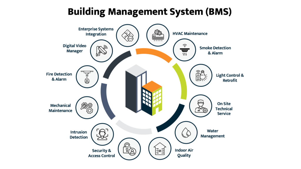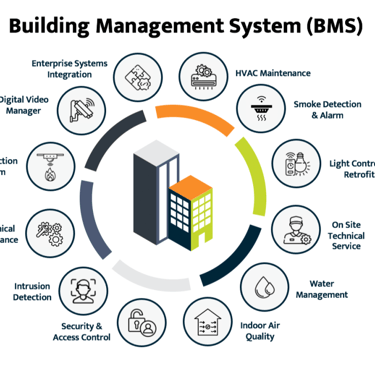Building Management Systems (BMS) are integrated control solutions designed to monitor, manage and optimize building operations such as HVAC, lighting, energy, fire safety, access control and other critical infrastructure. BMS centralizes data from multiple subsystems, enabling efficient control, automation and real-time monitoring to ensure comfort, safety and operational efficiency.