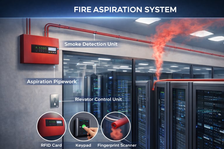 Fire Aspiration Systems, also known as Aspirating Smoke Detection (ASD) systems, are high-sensitivity fire detection solutions that continuously sample air through a network of pipes to detect incipient-stage smoke long before visible fire or conventional detectors activate. ASD’s provide very early warning, enabling proactive fire prevention and rapid response.